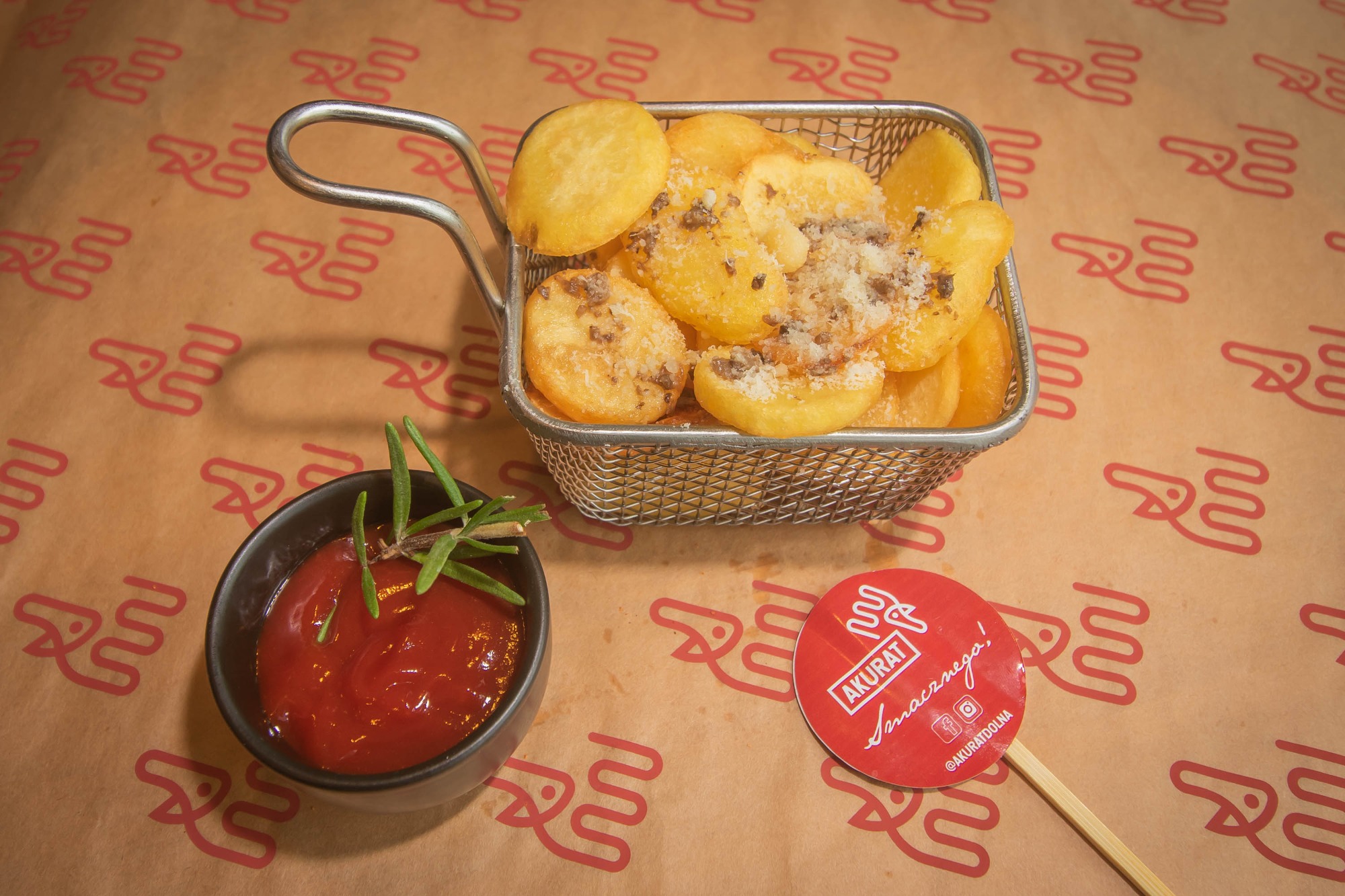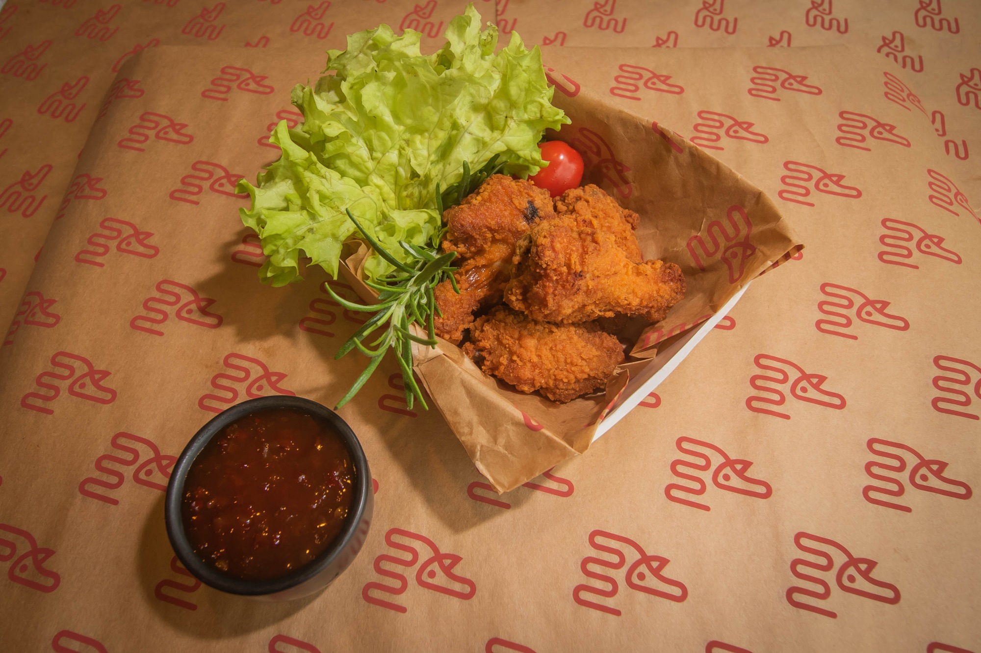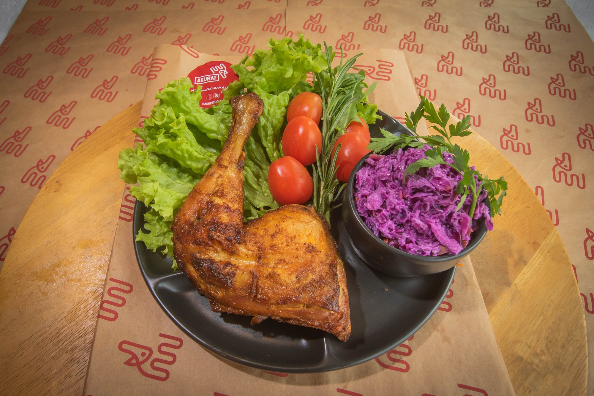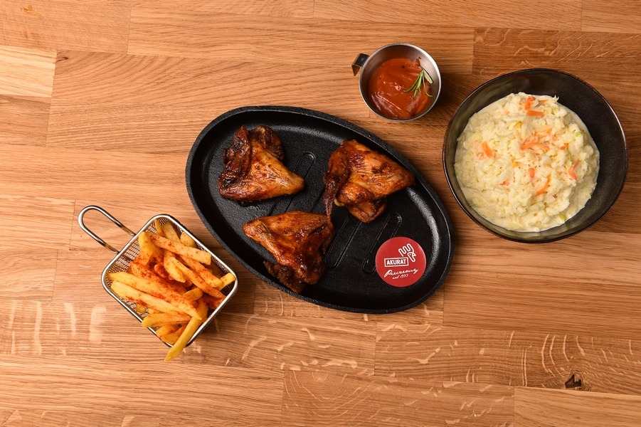 bułka, sałata, kotlet, pomidor, cebula, trzy rodzaje sosów - keczup, musztarda, remulada, prażona cebulka